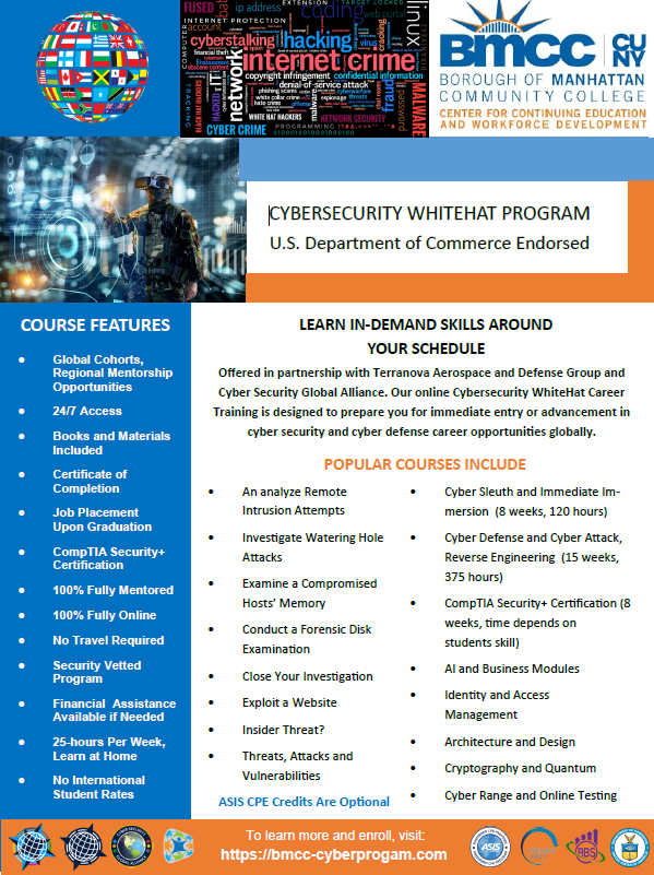 Welcomes the Borough of Manhattan Community College's Center for Continuing Education and Workforce Development Offering New Online Cybersecurity Pilot Programs